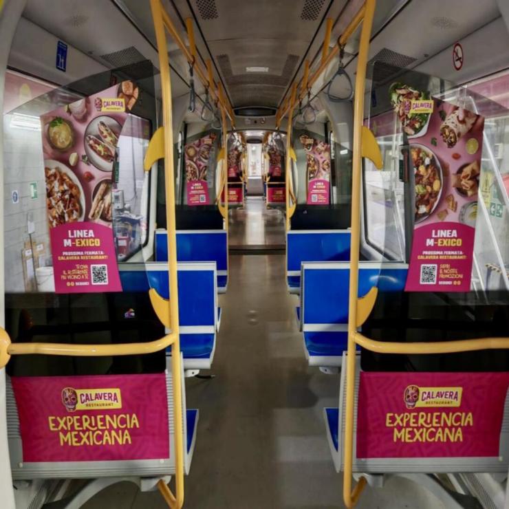 Abbiamo portato lo spirito Calavera in tutta la Metro M5 di Milano, brandizzando gli interni dei vagoni con i key visual che caratterizzano la comunicazione integrata del brand. Un netto richiamo all'Experiencia Mexicana, accogliente e piena di energia, che si può vivere visitando i ristoranti della catena presenti in città dove si possono gustare i piatti ricchi di carattere e bontà richiamati anche negli allestimenti.