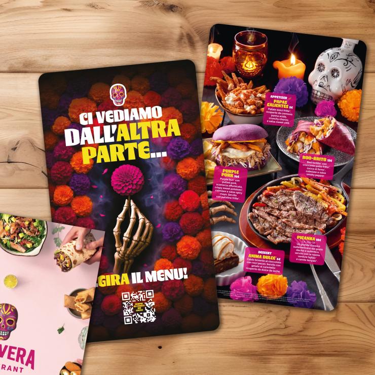 E lo fa con un copy irriverente che ribalta il concetto di morte in modo dirompente e teatrale, giocandoci con un effetto visivo che esalta l’Ánimo Calavera, quel cuore pulsante dell’esperienza da vivere nei ristoranti del gruppo e che non si ferma ai sapori ma si connette anche a tradizioni da scoprire e reinterpretare.