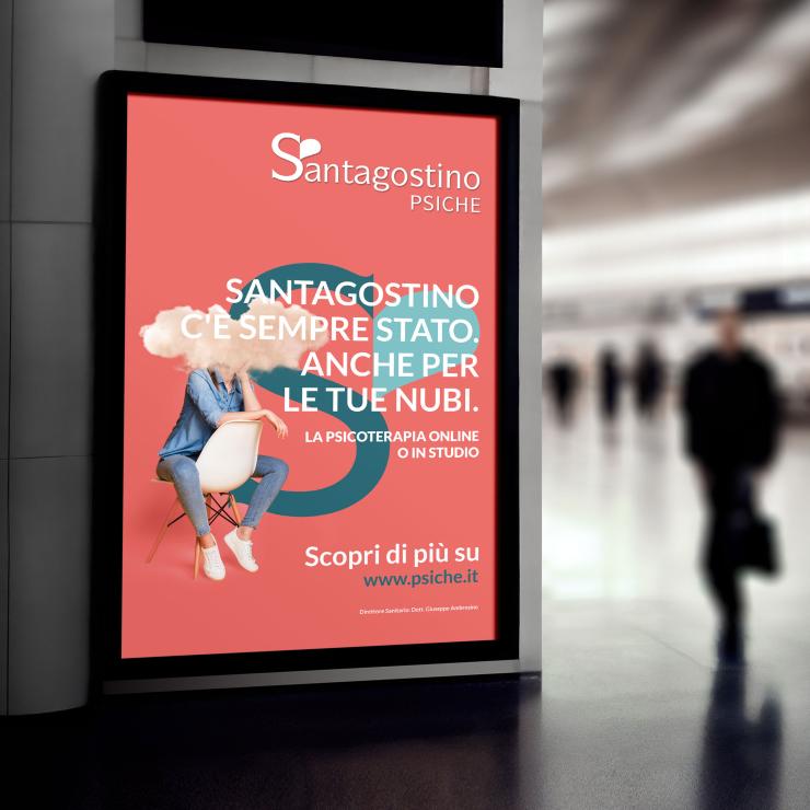 Per questa specifica divisione, Santagostino Psiche, è stata creata una campagna omnicanale ad hoc. Se infatti l'azienda ha una forte presenza a Milano, lo stesso non si può dire della unit dedicata alla psicoterapia. Da lì l'esigenza di creare una campagna di awareness che potesse raccontare ai milanesi che la stessa esperienza che viene riconosciuta in Santagostino a livello di salute fisica, può essere riconosciuta anche i suoi specialisti dedicati alla salute mentale. Una campagna di comunicazione che ha utilizzato la nube di pensiero come mezzo per creare una visual identity rappresentativa dei pensieri nuvolosi e di come Santagostino Psiche possa aiutare a ritrovare limpidità. Non solo una campagna di comunicazione integata, ma anche un sito web su cui approfondire il tema.