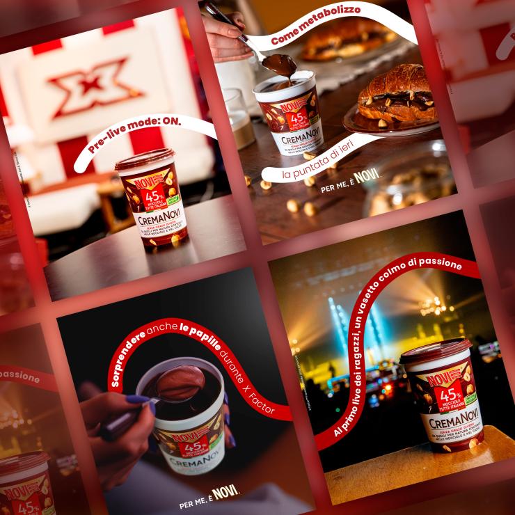 Una comunicazione coerente, coesa, a partire da un key visual distintivo per allacciare la cremosità di Crema Novi all'iconicità di XFactor mettendo al centro il simbolo chiave del brand: il cucchiano, necessario per gustare Crema Novi al suo massimo: in purezza. Un key visual che ha accompagnato il Brand in una presenza strategica su una molteplicità di piattaforme, con un'azione omnicanale.